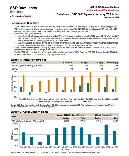 S&P 500® Dynamic Intraday TCA Index dashboard